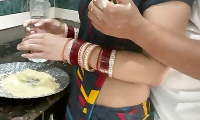 Indian Couple Romance In The Kitchen - Saree Romp - Saree Lifted Up Ass Spanked Boobs Press