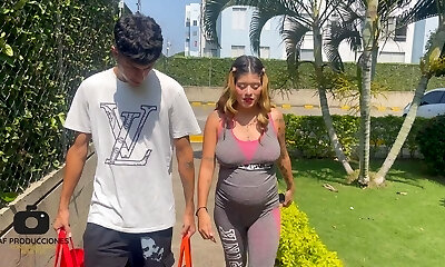 Knocked Up Colombian dame is caught by her morbid neighbor while she arrives home to pump her milk