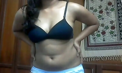 Ardent dark-hued head from India stripteases and flashes her boobs