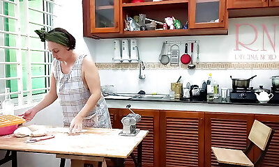 Ravioli Time! Naked Cooking. Regina Noir, a naturist cook at naturist hotel resort. Nude maid. Naked housewife. Episode 1
